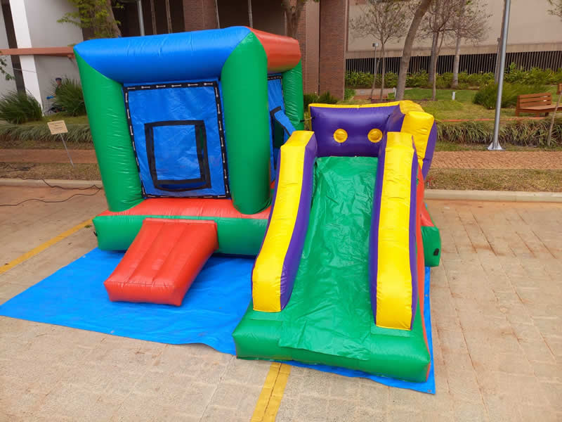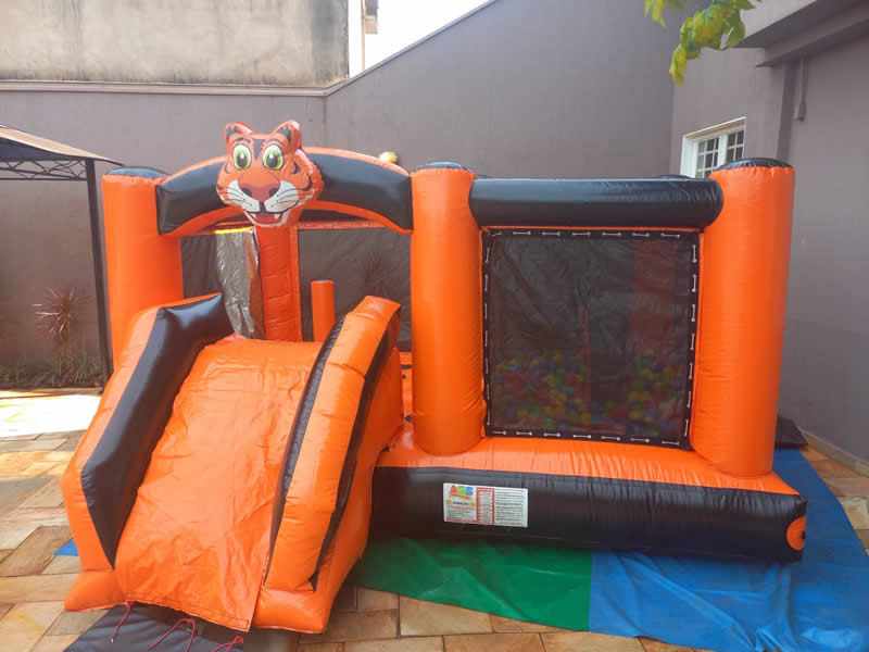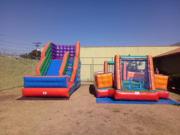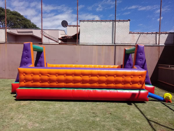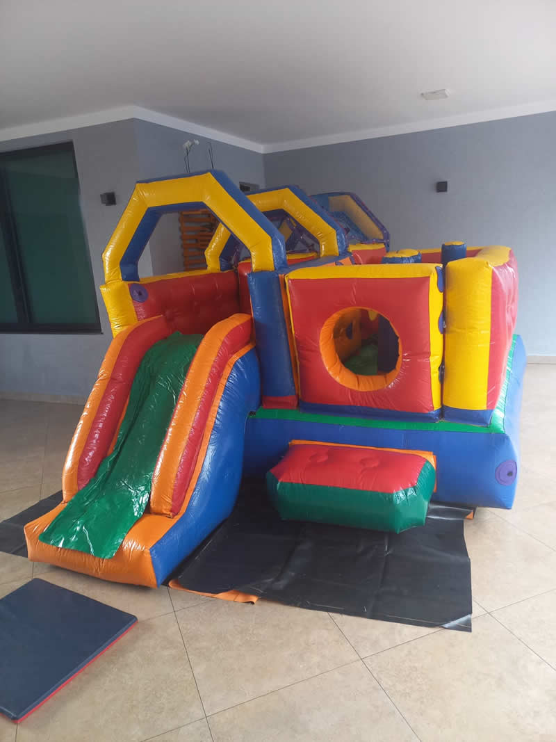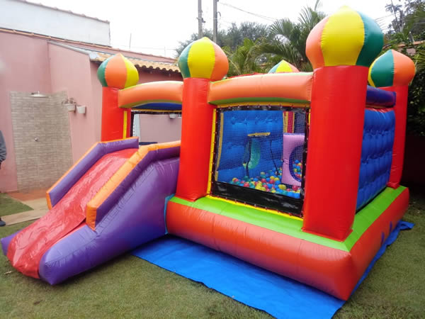 Um brinquedo muito legal com tamanho 5,50 x 3,00 x 1,70 m.Contém piscina de bolinhas, escorregador e vários obstáculos.