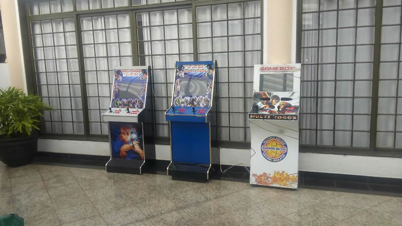 Nossos fliperamas são de estilo europeu, com telas de led e contém 900 jogos em sua memória. Não precisa de fichas, pois há créditos livres para brincar o tempo todo. Pode jogar até dois jogadores.